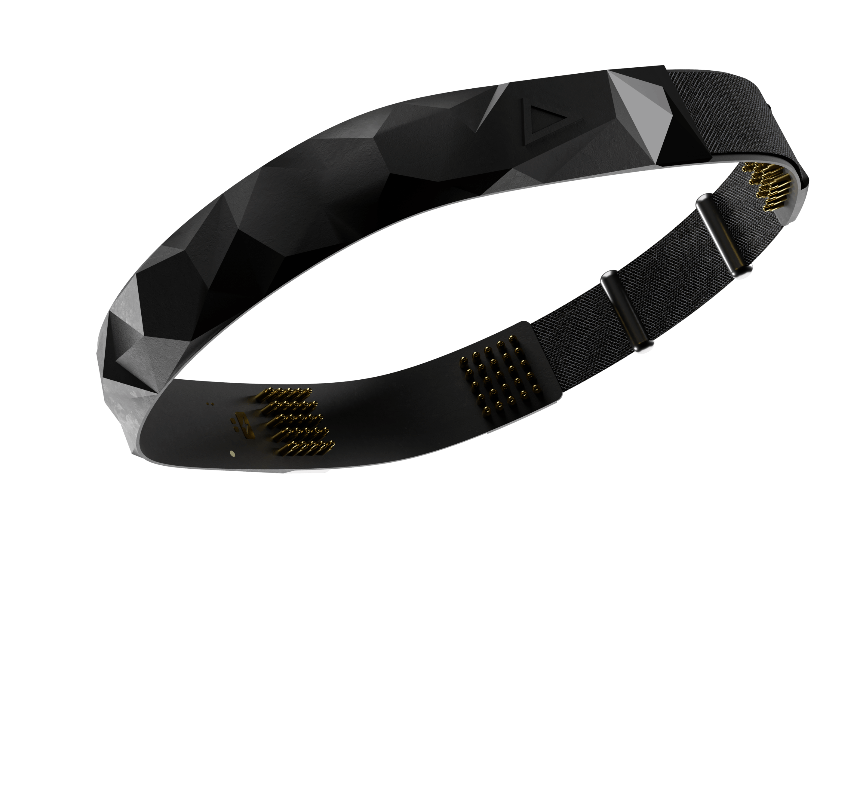 A headband with 4 dry spring-loaded electrodes for reading electrical brain activity.